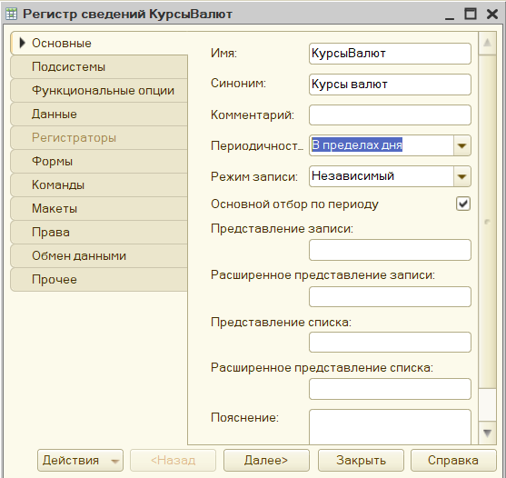 Для примера создадим простую конфигурацию, где табличные части заполняются с помощью запросов. В состав конфигурации войдут справочники, документы, регистр сведений.