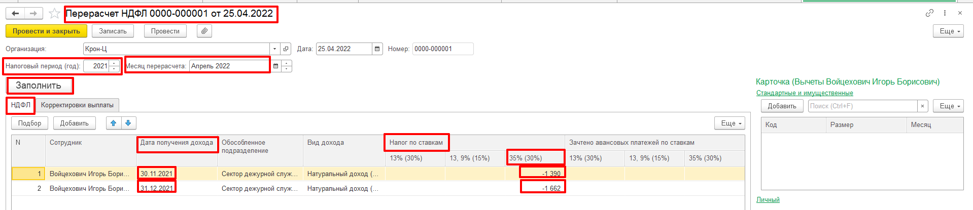 В соответствии с нормой законодательства принято решение пересчитать НДФЛ с материальной выгоды за 2021 год в Апреле 2022 года.